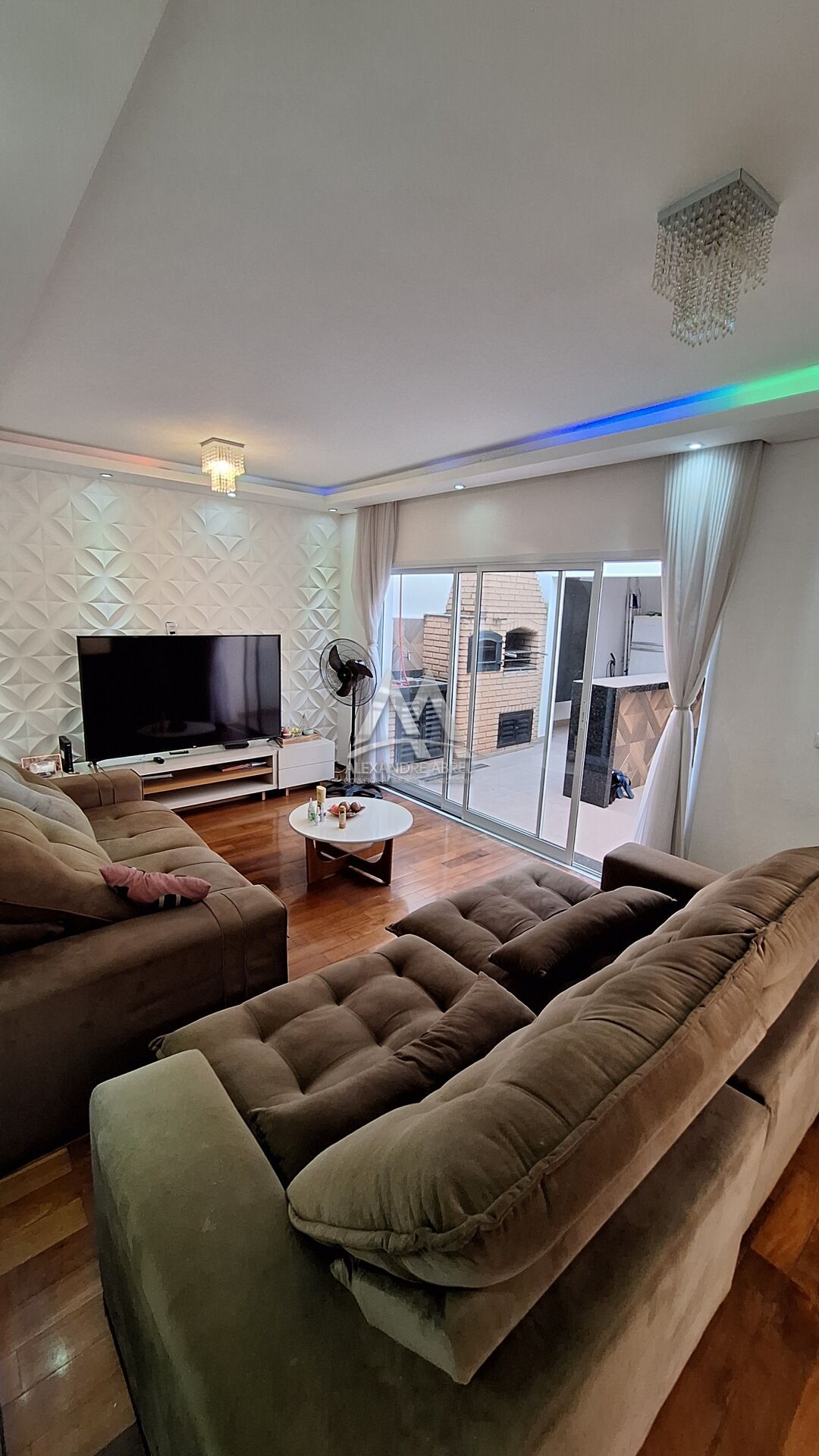 Sala integrada com area gourmet e sala de jantar