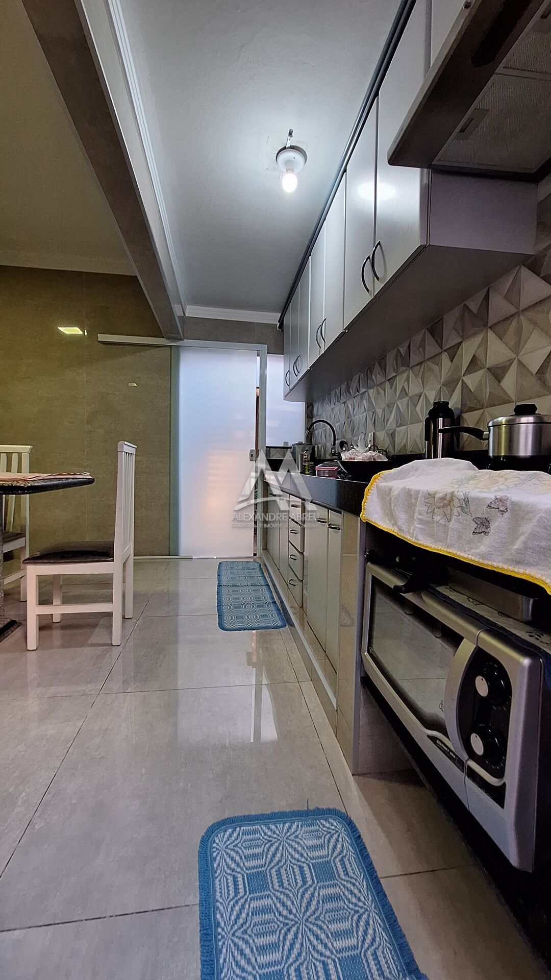 Cozinha toda em porcelanato e com planejado