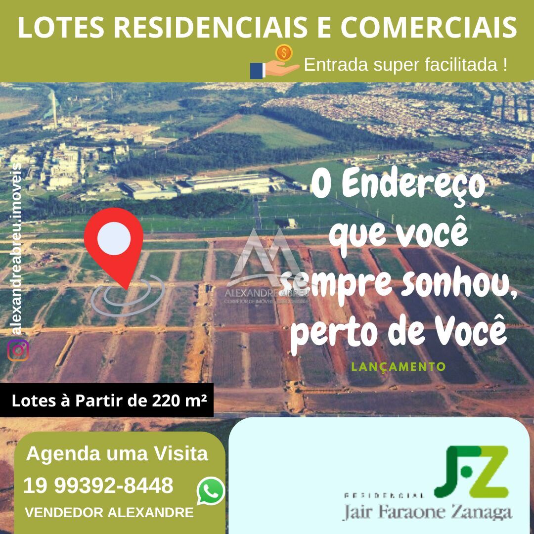 O Residencial Jair Faraone Zanaga é, sem qualquer dúvida, o loteamento mais esperado de Americana. Composto de lotes comerciais e residenciais, é um loteamento aberto com conceito de condomínio fechado. Tudo isso localizado num dos maiores vetores de crescimento da região. Não é a toa que o JFZ é SUCESSO ABSOLUTO de vendas!